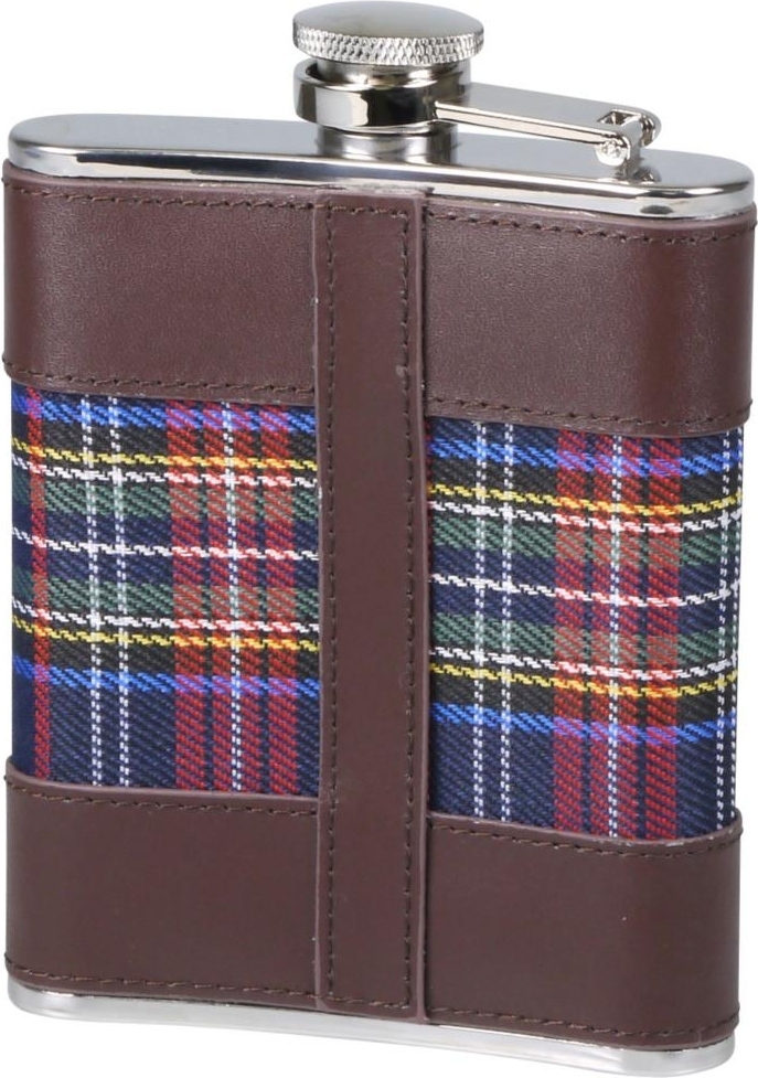 Flachmann Edelstahl, Leder, Karo, 6 oz / 180 ml, Gravurfeld