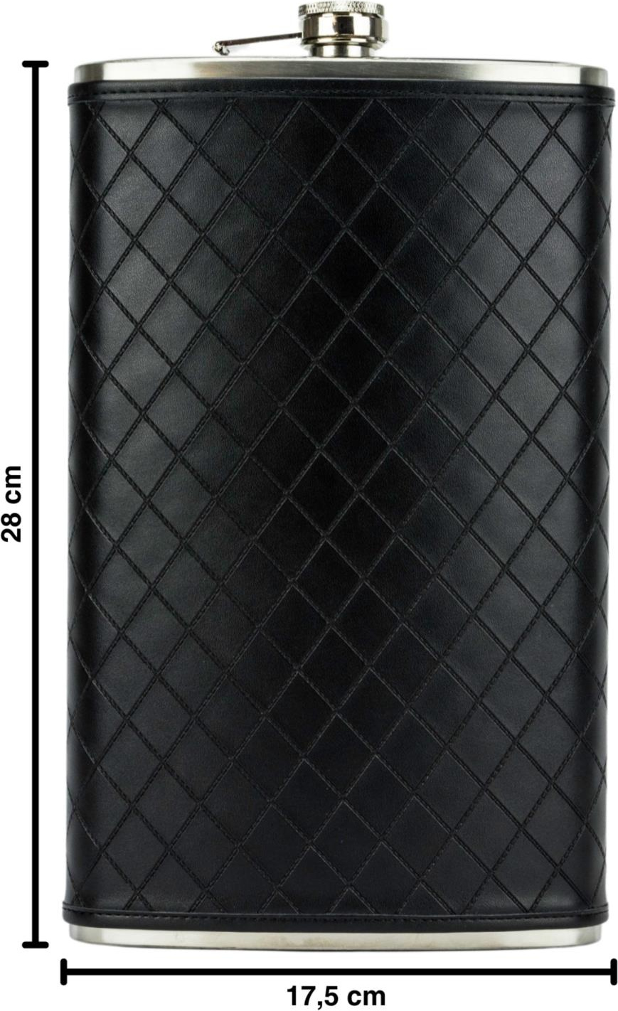 Flachmann Edelstahl/Kunstleder, schwarz, Raute, 64oz/1920ml mit Bügel
