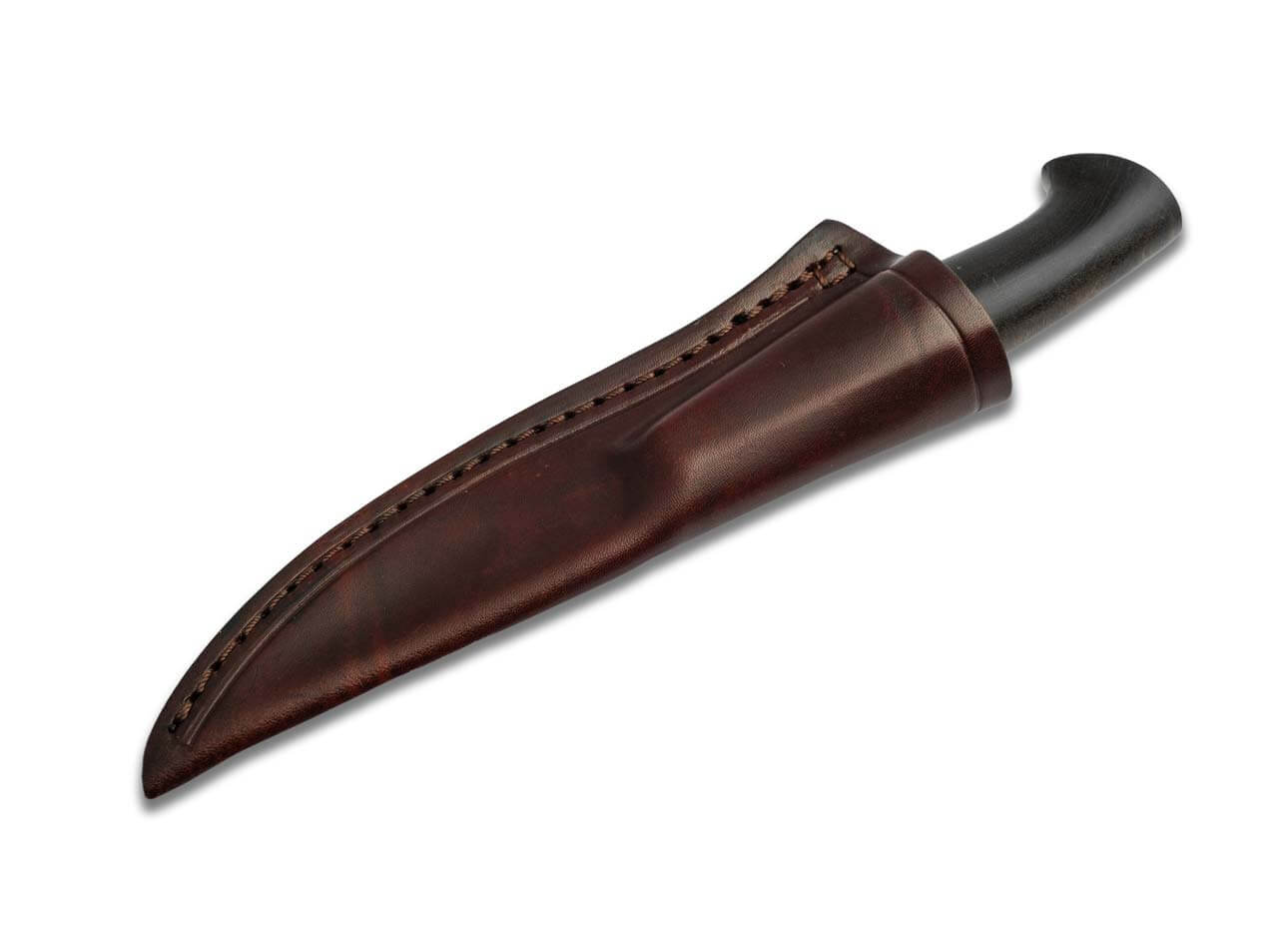 Erst ein rauer Gegenwind verleiht der Leidenschaft den nötigen Auftrieb; um aufzublicken, um daran zu wachsen. Von der ersten Skizze bis zum fertigen Produkt ist der Weg steinig, mit Rückschlägen fürs Vorankommen. Einen Weg, den Andreas Schweikert nur zu gut kennt. Der Schmiedemeister aus dem baden-württembergischen Talheim fertigt seit seiner Jugend Messer von Hand. Für das Magnum Collection 2024 konnte Böker den begnadeten Messerschmied von der Schwäbischen Alb gewinnen, um die erfolgreiche Geschichte der Magnum Jahresmesser würdig fortzuschreiben. Das weltweit auf 1999 Exemplare limitierte, im Gesenk geschmiedete Sammlermesser ist als kompaktes Outdoormesser in Integralbauweise konzipiert und wurde maßgeblich von den klassischen Jagdnickern inspiriert. Kennzeichnend ist die satinierte Droppoint-Klinge aus 440, deren attraktive Fehlschärfe zum Griff hin in einen breiteren Klingenrücken für maximale Stabilität übergeht. Passend dazu zitiert der ausgeprägte Kropf die Silhouette des klassischen Jagdmessers. Der Griff aus stabilisiertem Riegelahorn mit markantem Knauf sorgt für einen haptischen Genuss. Der steinige Pfad wird zur Ideallinie, der Gegenwind zum Rückenwind, das Böker Magnum Collection 2024 zur perfekten Balance zwischen Vitrine und Outdoor-Abenteuer. Die Auslieferung des Jahresmessers erfolgt in einer eleganten Holzschatulle samt hochwertiger, dunkelbraunen Lederscheide sowie einem Echtheitszertifikat.