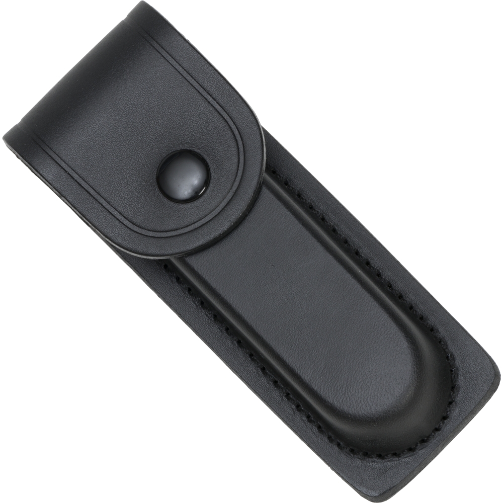 Ein wertiges Lederetui mit praktischem Druckknopfverschluss.