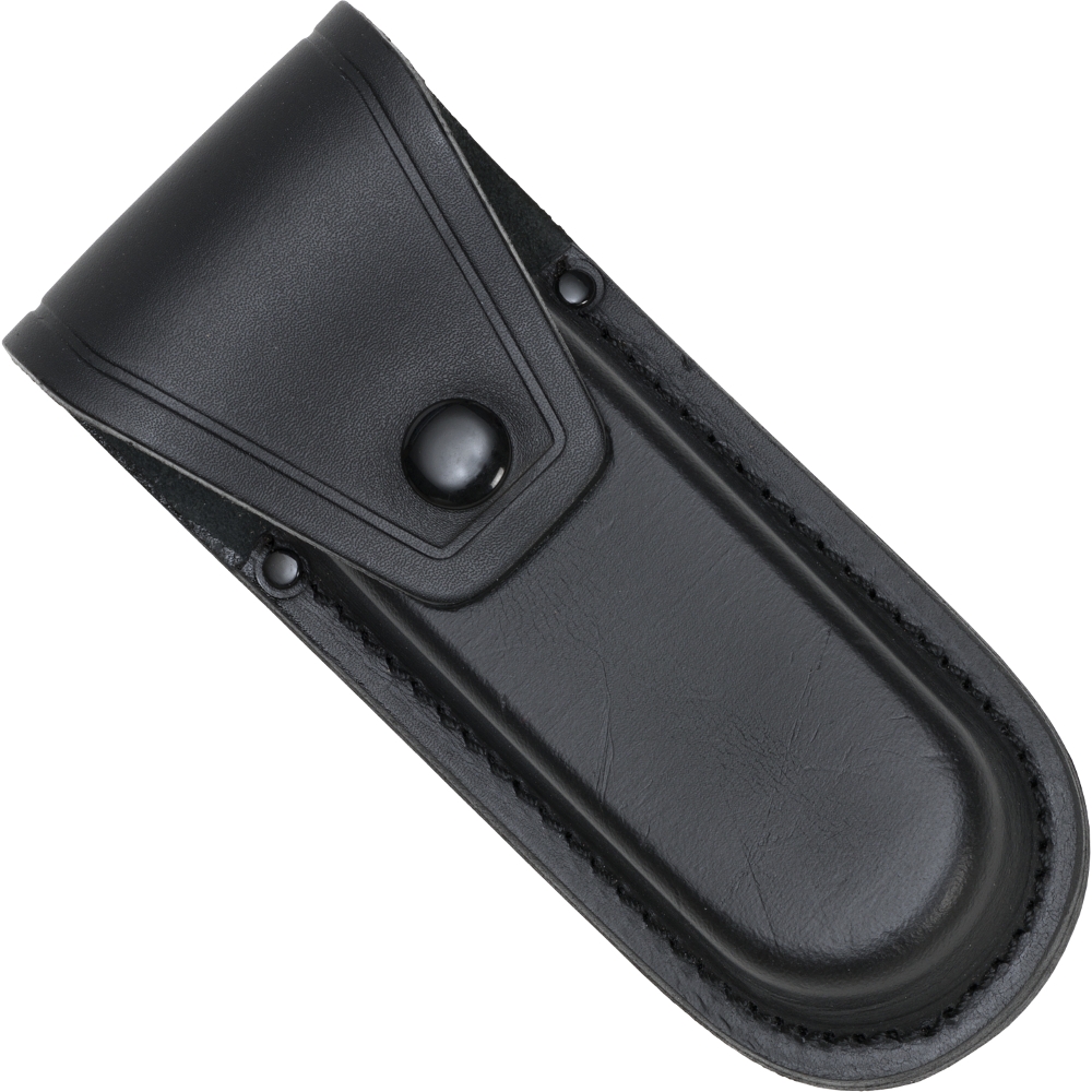 Ein wertiges Lederetui mit praktischem Druckknopfverschluss.