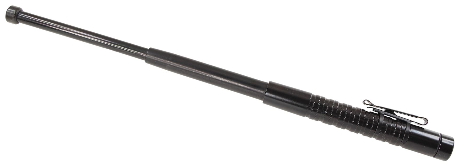 Die kompakte Vollmetallausführung des ESP-Teleskop-Schlagstocks ist vor allem zum verdeckten Tragen bestimmt. Dank seinen stark reduzierten Abmessungen eignet er sich für alle Streitkräftemitglieder oder Angestellte von Sicherheitsdiensten, die ihren Einsatz in Zivilkleidung ausüben. Dieser Schlagstock ist im Gegensatz zu den meisten Wettbewerbsprodukten aus gehärtetem Stahl hergestellt. Somit findet er Anwendung in den anspruchsvollsten Einsätzen unter extremen Bedingungen. Die Querriffelung garantiert einen sicheren Griff und dient zugleich zur Befestigung vom Fixierungsclip. Diesen kann man je nach Bedarf beliebig verschieben, ggf. vom Schlagstockvollkommen abnehmen. Der Schlagstock ist zum Tragen ohne Holster oder nur mit dem Metallclip bestimmt.